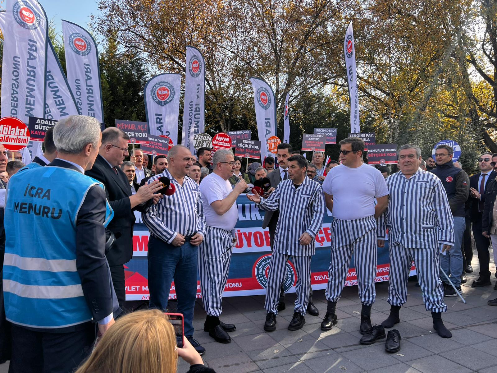 Basın açıklaması sırasında sembolik bir protesto da gerçekleştirildi. Temsili olarak bazı memurlara icra tebligatları gösterilerek imzalatıldı. Bu sahne, kamu çalışanlarının artan borç yüküne dikkat çeken anlamlı bir mesaj olarak değerlendirildi.