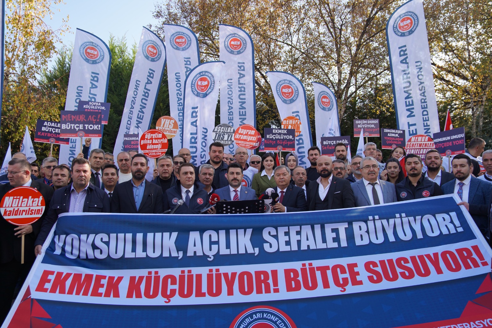 “Bugün artık gözümüz teatral masalarda değil, milletin meclisindedir. Memura ek zam şarttır! Meclise çağrı, emeğe saygı!”