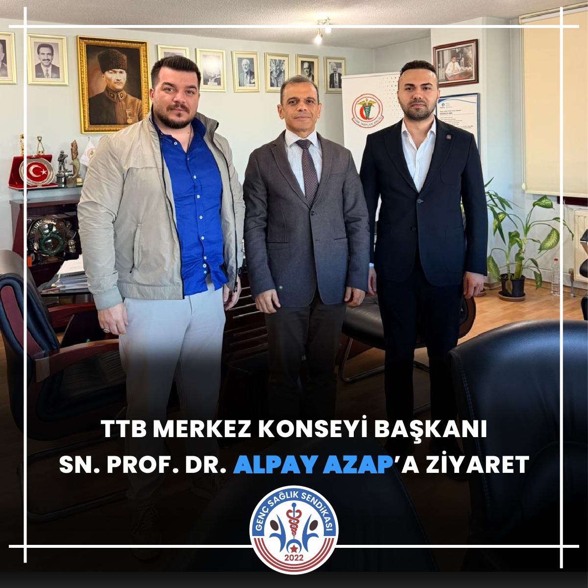 Genç Sağlık Sendikası Genel Sekreteri Furkan Ali Çiftçioğlu ve Genel Başkan Yardımcısı Arif Camgöz, Türk Tabipleri Birliği Başkanı Prof. Dr. Alpay Azap’ı makamında ziyaret etti.