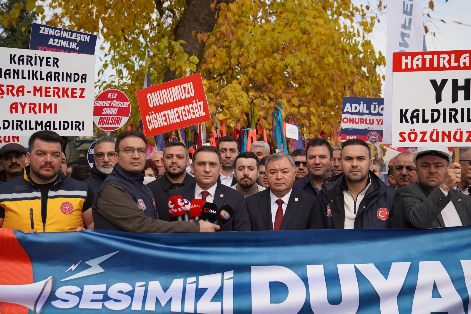 Açıklamayı, DMK Genel Başkan Yardımcısı ve TEÇSEN Genel Başkanı Ümit Demirel yaptı. Basın açıklamasında, milyonlarca kamu çalışanı ve emeklinin geçim mücadelesinin her geçen gün ağırlaştığı vurgulanarak, yetkililere “Sesimizi duyan var mı?” çağrısı yapıldı.