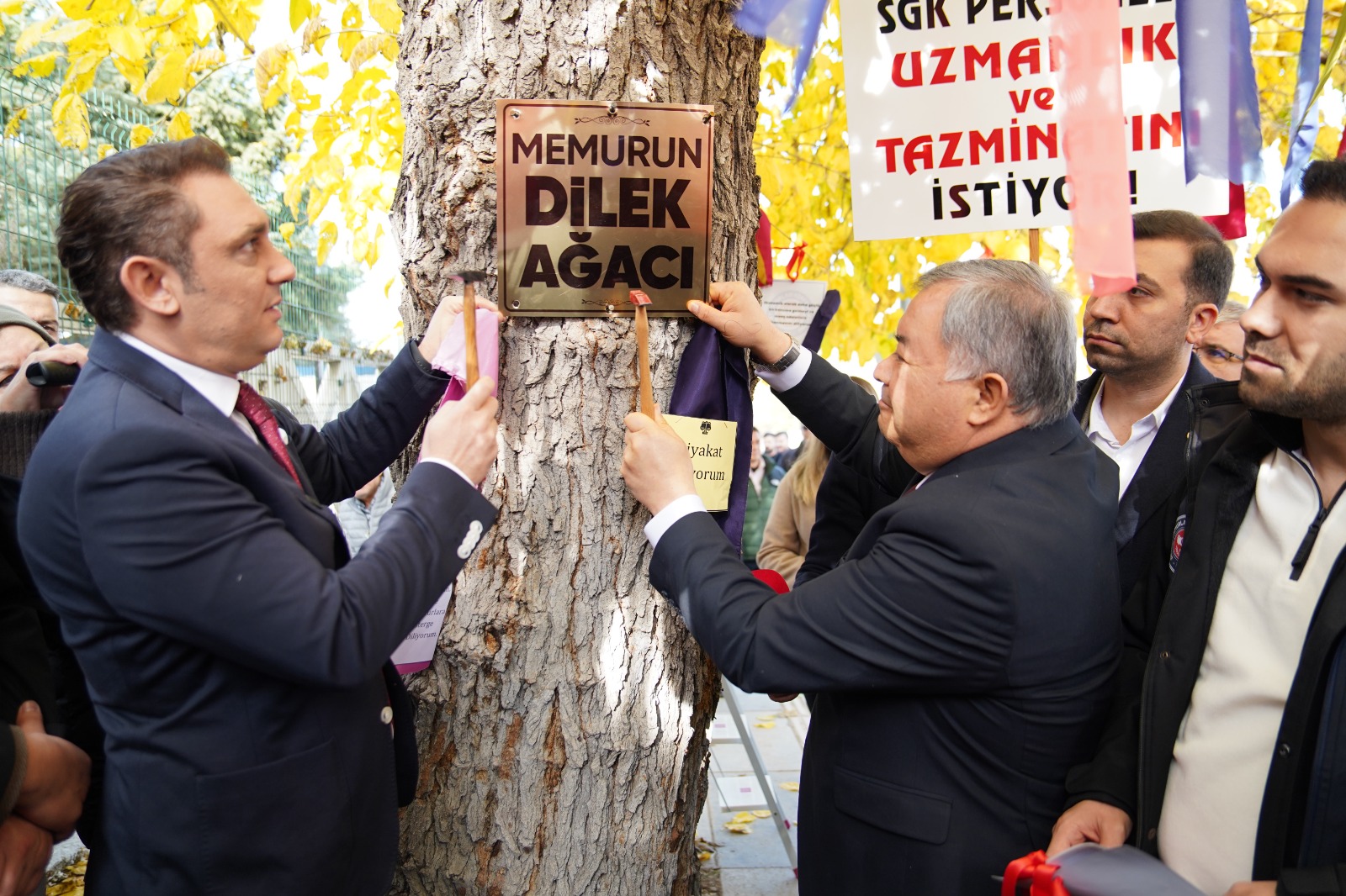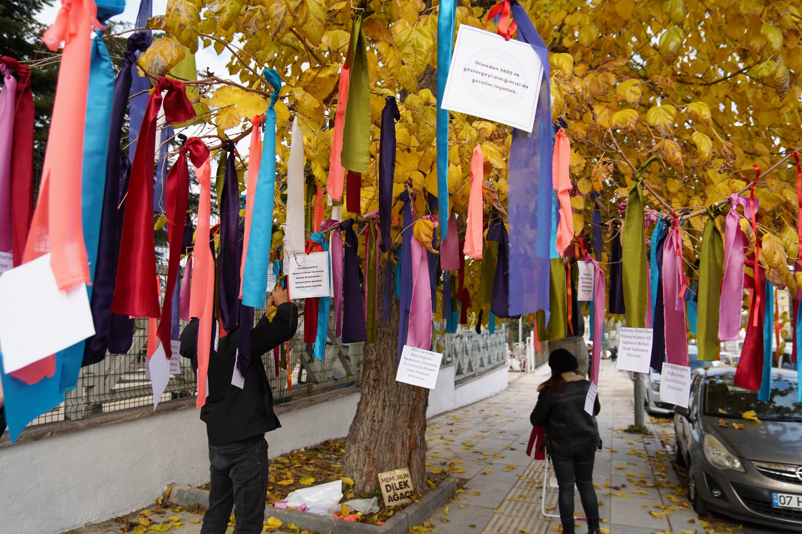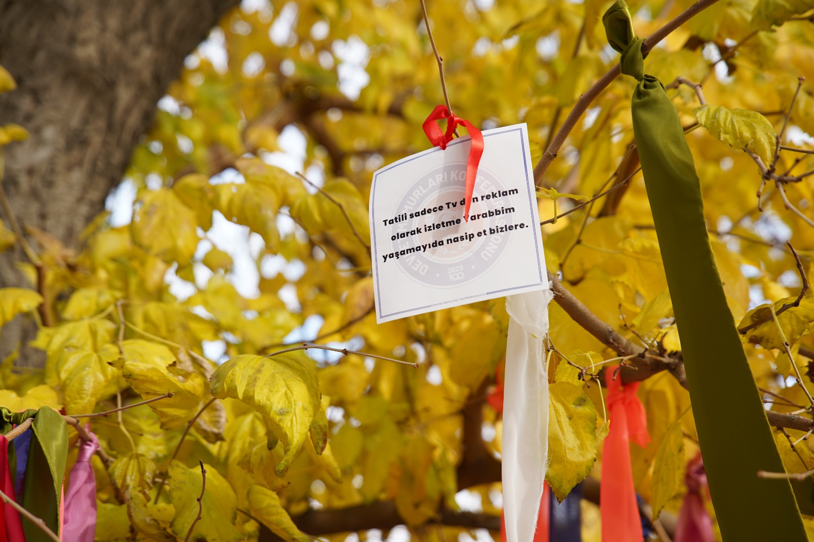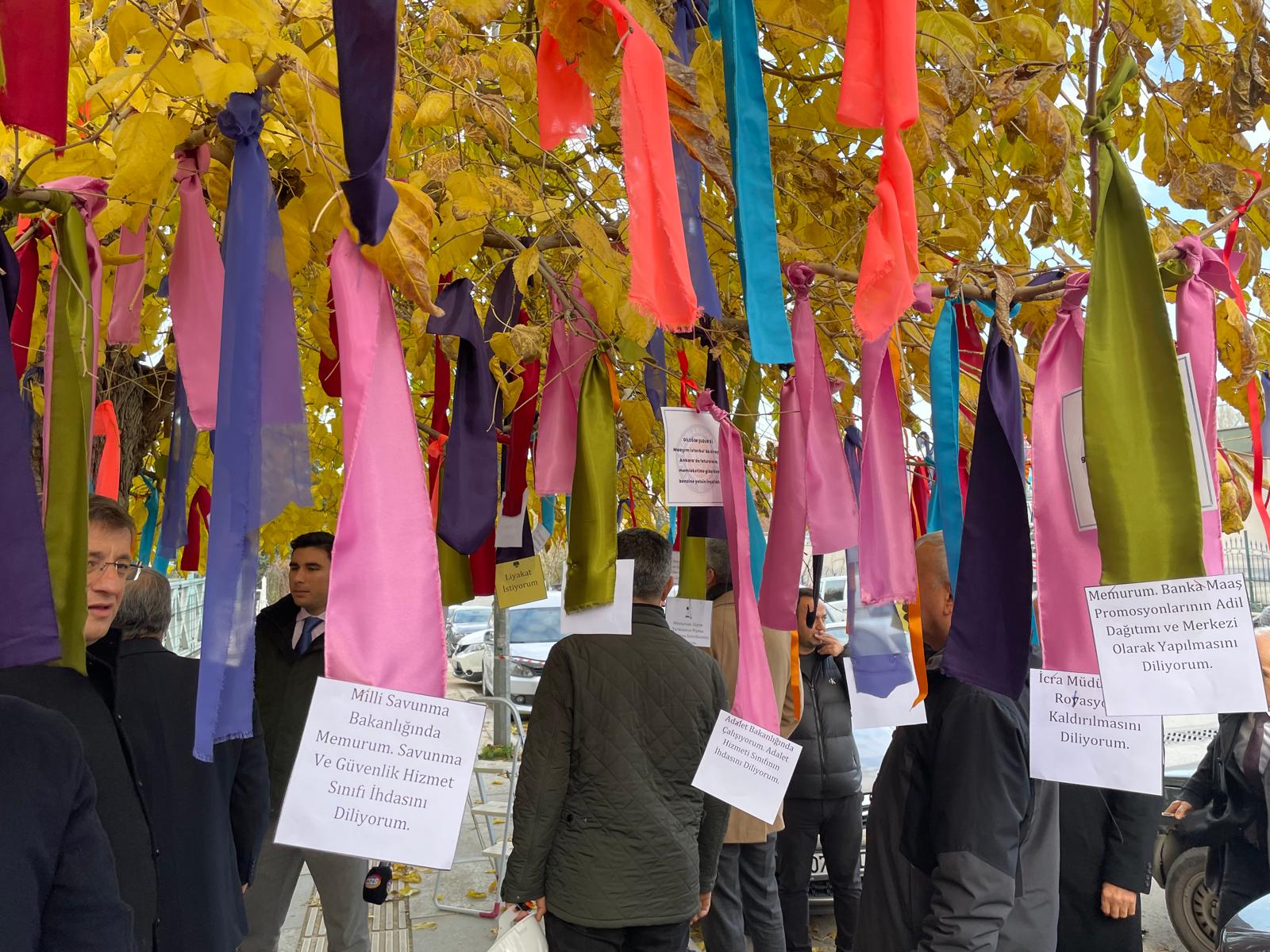 Eylem kapsamında, konfederasyonun gelenekselleştirdiği “Memurun ve Emeklinin Dilek Ağacı”na talepler asılarak farkındalık oluşturuldu.