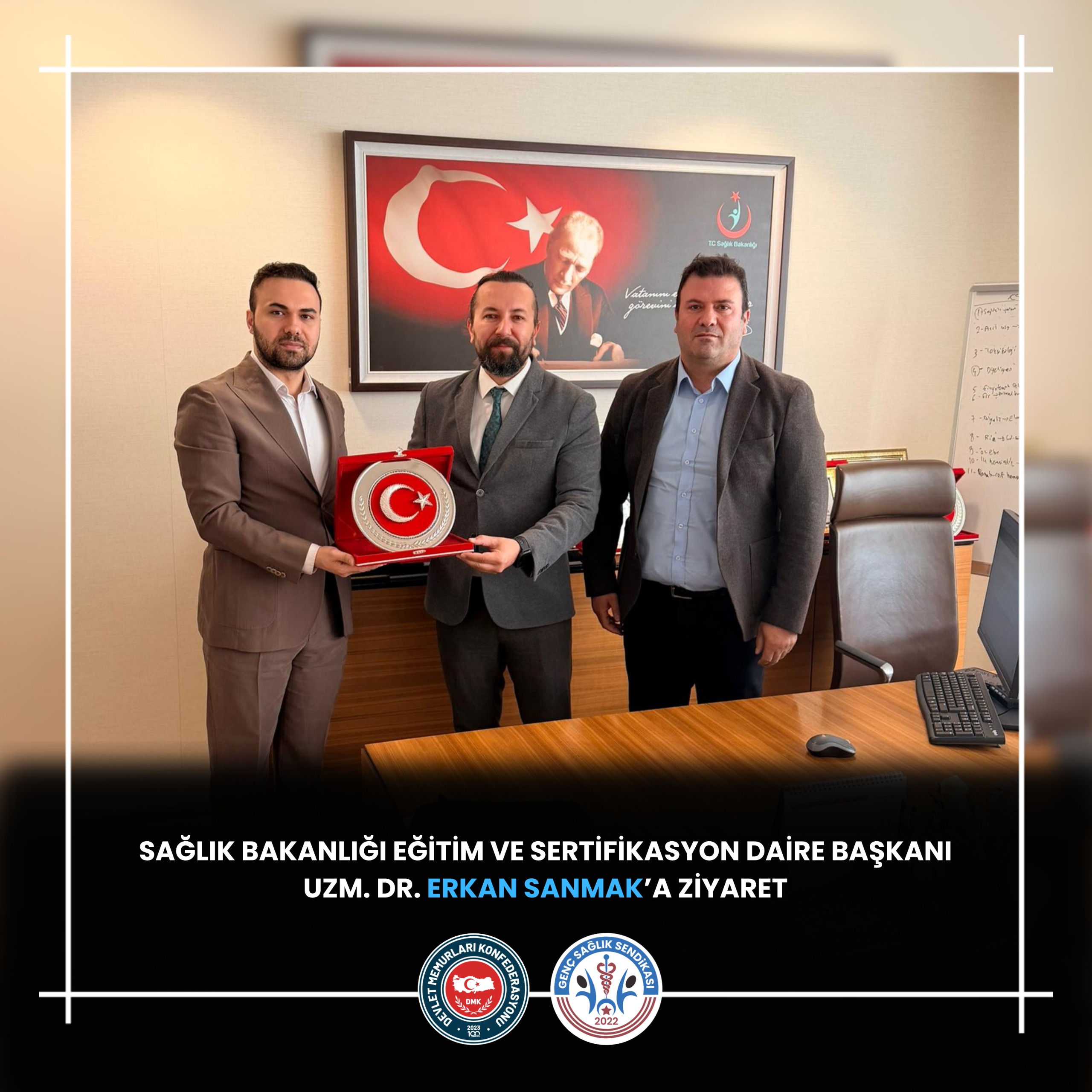 Sağlık Bakanlığı Eğitim ve Sertifikasyon Daire Başkanı Uzm. Dr. Erkan Sanmak’ı makamında ziyaret ettik.