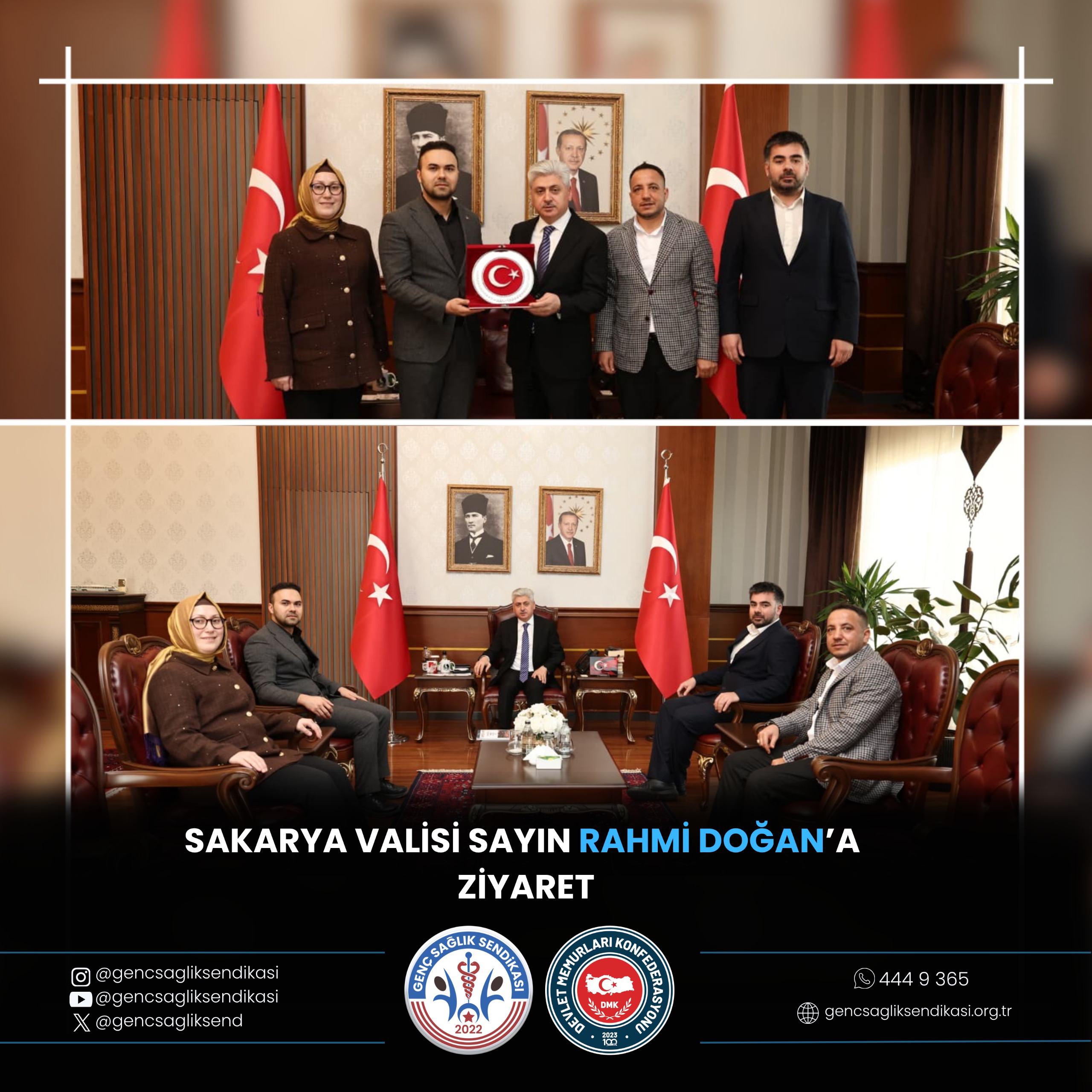 Genç Sağlık Sendikası (GSS) Genel Başkan Yardımcısı Furkan Ali Çiftçioğlu, Sakarya İl Şube Başkanı Betül İkiz Akbulut ile birlikte SakaryaValisi Rahmi Doğan’ı makamında ziyaret etti.